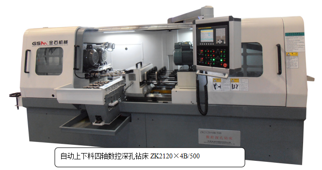 應(yīng)廣大用戶的要求,金石機(jī)械在之前制造四軸槍鉆機(jī)床的基礎(chǔ)上,針對(duì)工件裝卸的不便及費(fèi)時(shí)的缺點(diǎn),研發(fā)了如下自動(dòng)上下料的四軸深孔鉆床。大大提高了槍鉆機(jī)床的利用率,并降低了操作工人的勞動(dòng)強(qiáng)度。很快得到廣泛應(yīng)用。